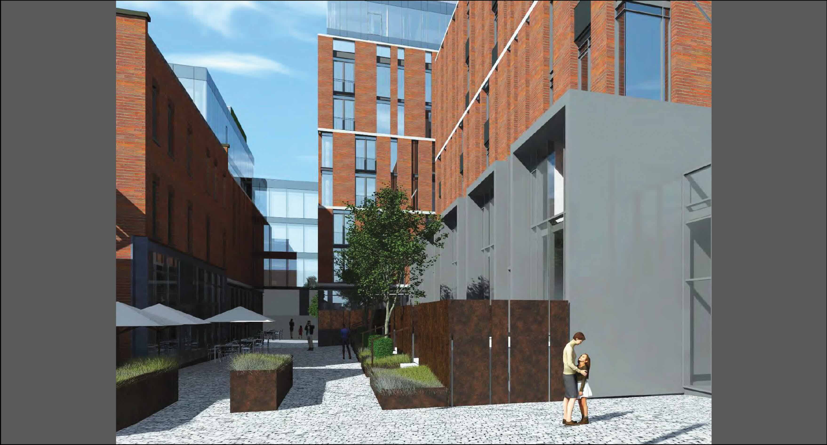 Other Aspects: 17,500 sq ft commercial space, 4,400 sq ft city-owned community space, 2 public courtyards and walkways